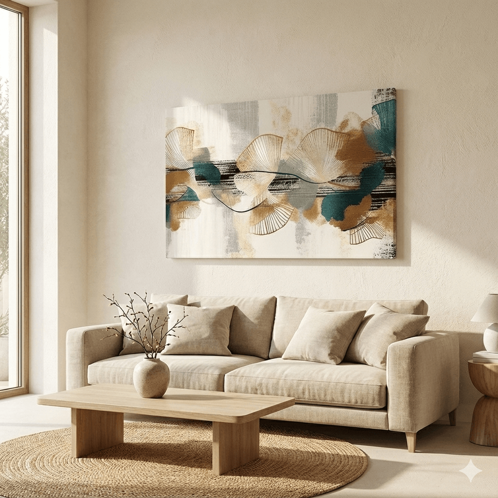 Harmonie Naturelle – Art Abstrait Moderne sur Toile, Tons Vert & Ocre