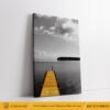 Paysage Noir et Blanc avec montgolfières et ponton.