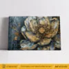 Tableau Fleur Bleu Gris et Or – Effet Relief 3D