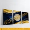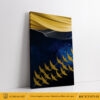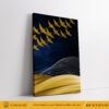 trio décoratif élégent – des oiseaux dorés en migration sur fond bleu nuit