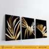 Trio décoratif élégent – feuilles tropicales stylisées en or & en noir, fond noir