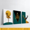 Trio Décoratif élegent – Flamant, Motif Géométrique & Cerf Doré