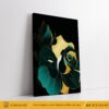 Trio décoratif élégent – roses abstraites aux pétales verts foncés & dorés, fond noir
