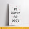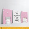 Trio félin rose et blanc – fond étoilé ,texte”be happy my baby”, chats mignonnes
