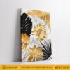Trio floral doré élégant – Grandes feuilles lumineuses en or sur fond sombre