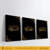“Triptyque Calligraphie Arabe Dorée – Décoration Murale Élégante sur Fond Noir”