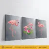 Triptyque Flamants Roses – Élégance Tropicale sur Fond Gris