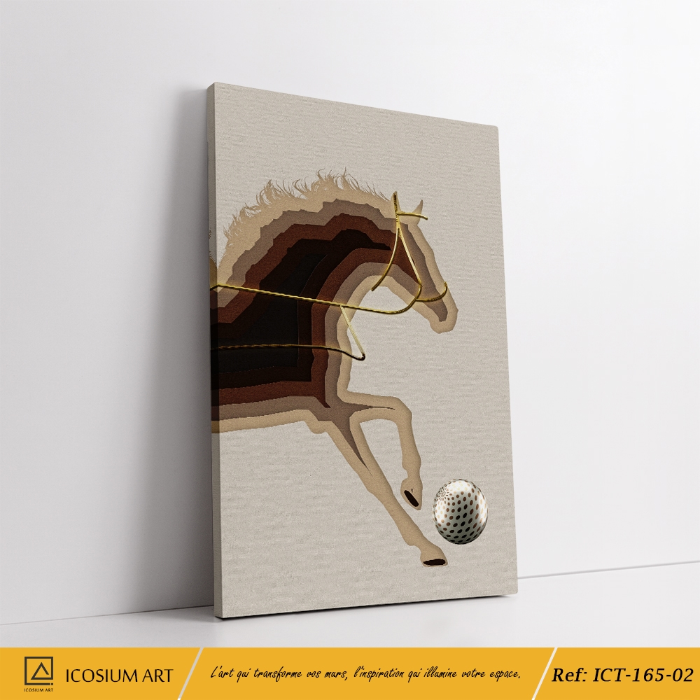 Luxe Équestre – Triptyque avec Cheval en Mouvement et Touches Dorées