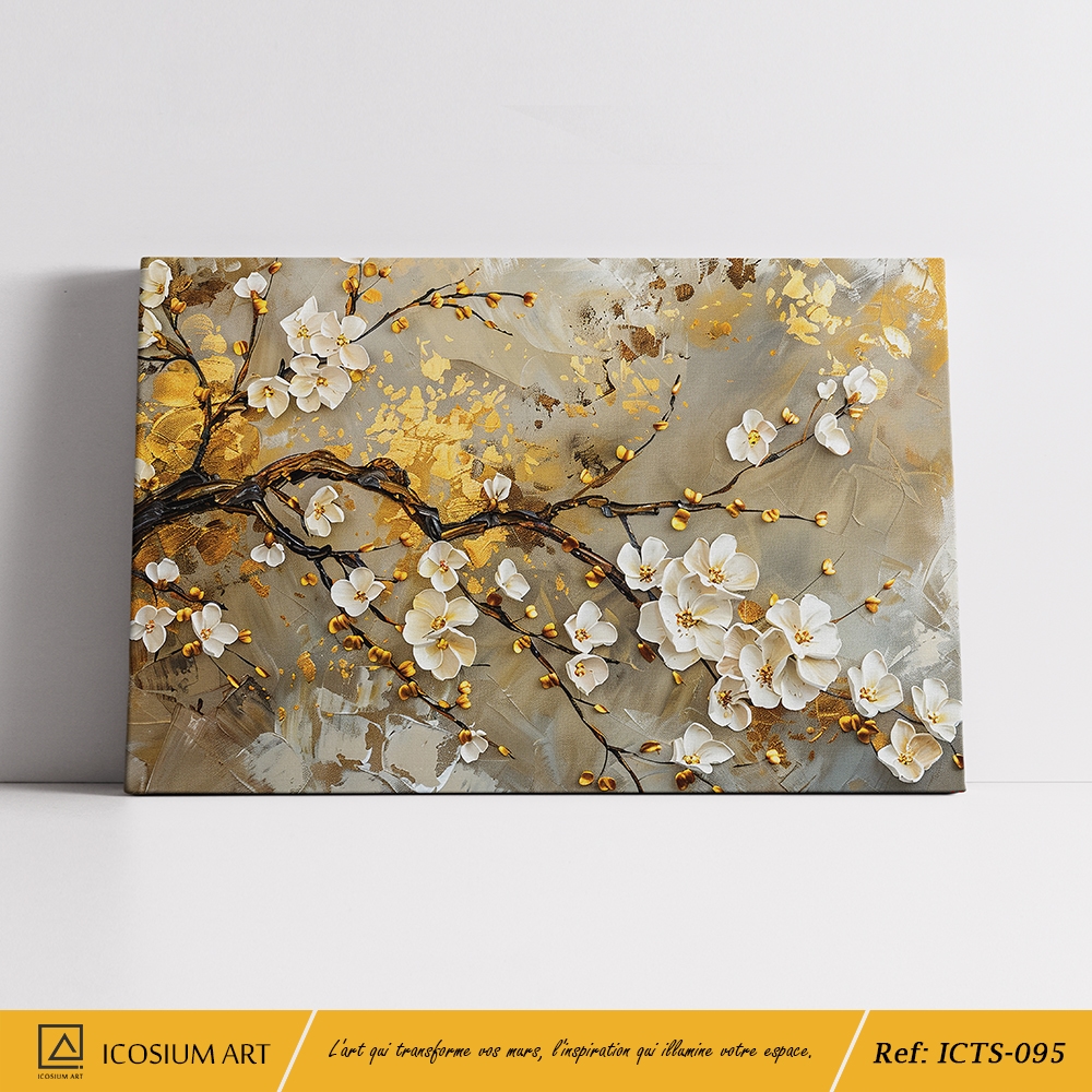 Tableau Branche de Cerisier Blanc et Or – Style Japonais