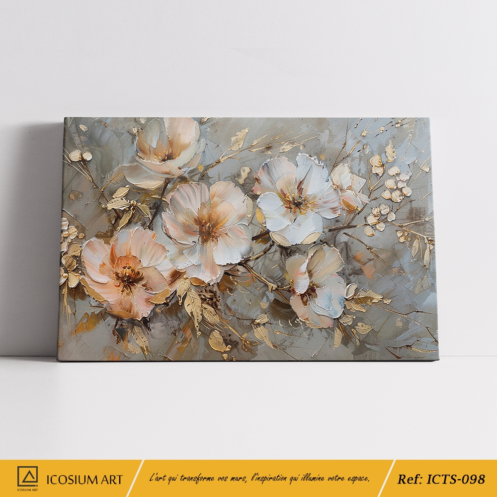 Tableau Fleurs de Cerisier et Or sur Fond Gris – Effet Relief