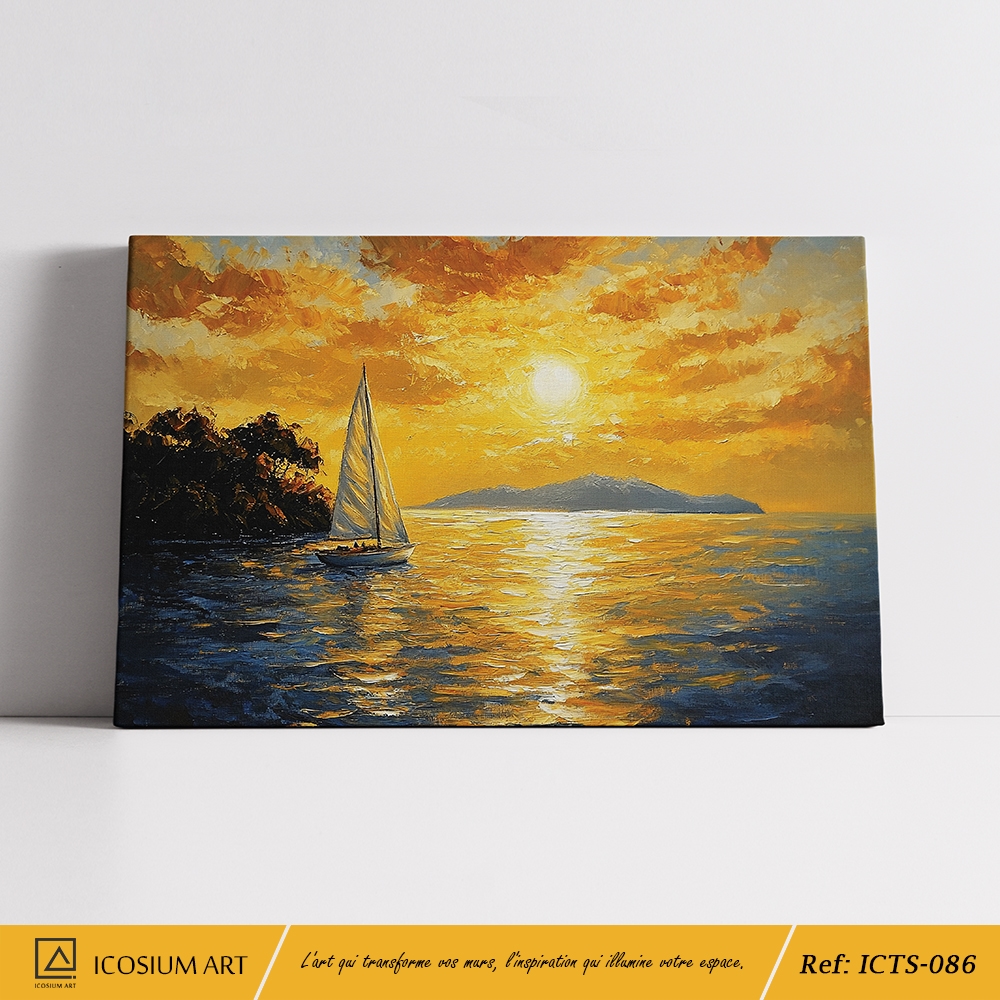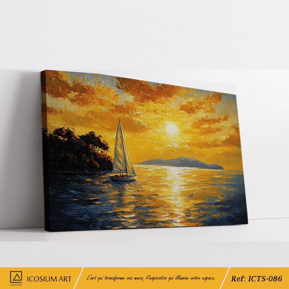 Tableau Voilier Coucher de Soleil – Impressionnisme Orange et Or