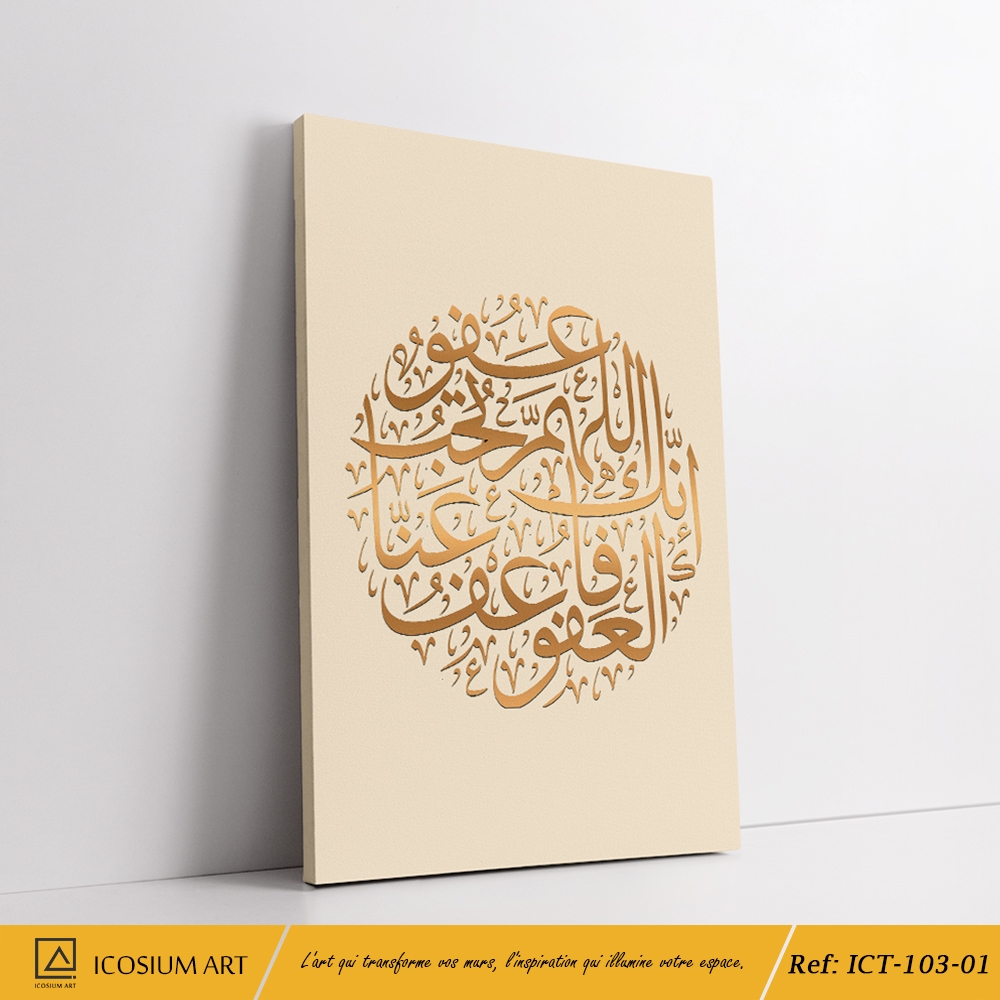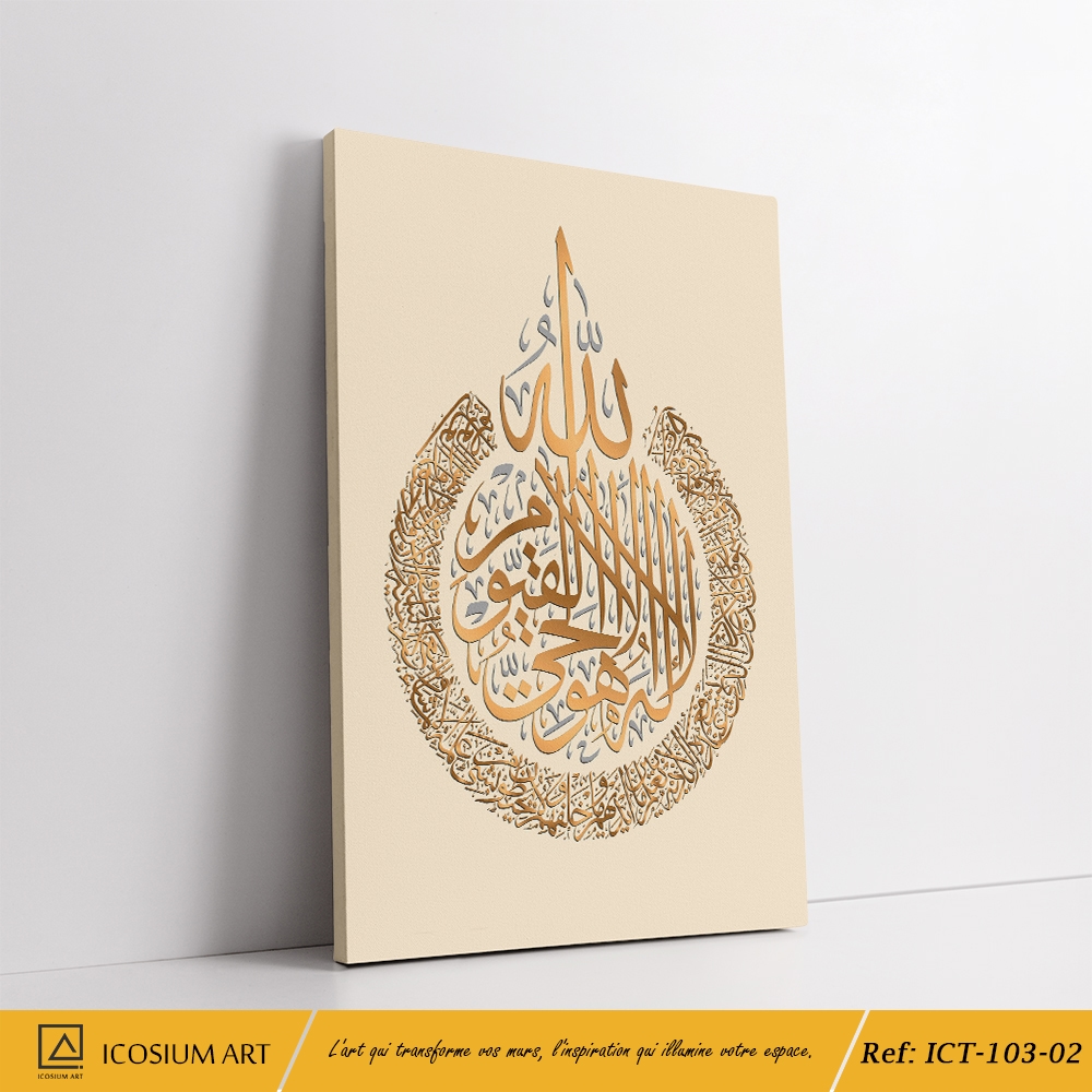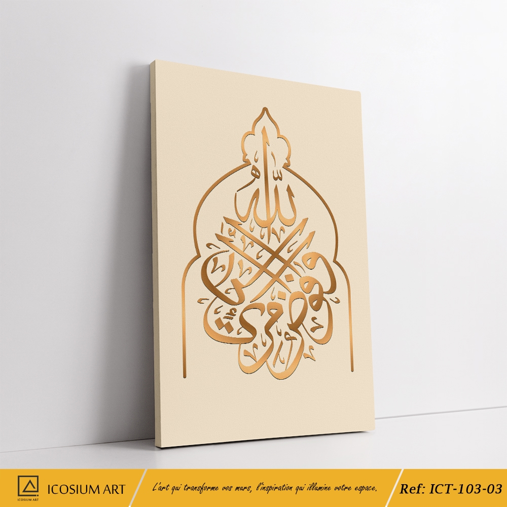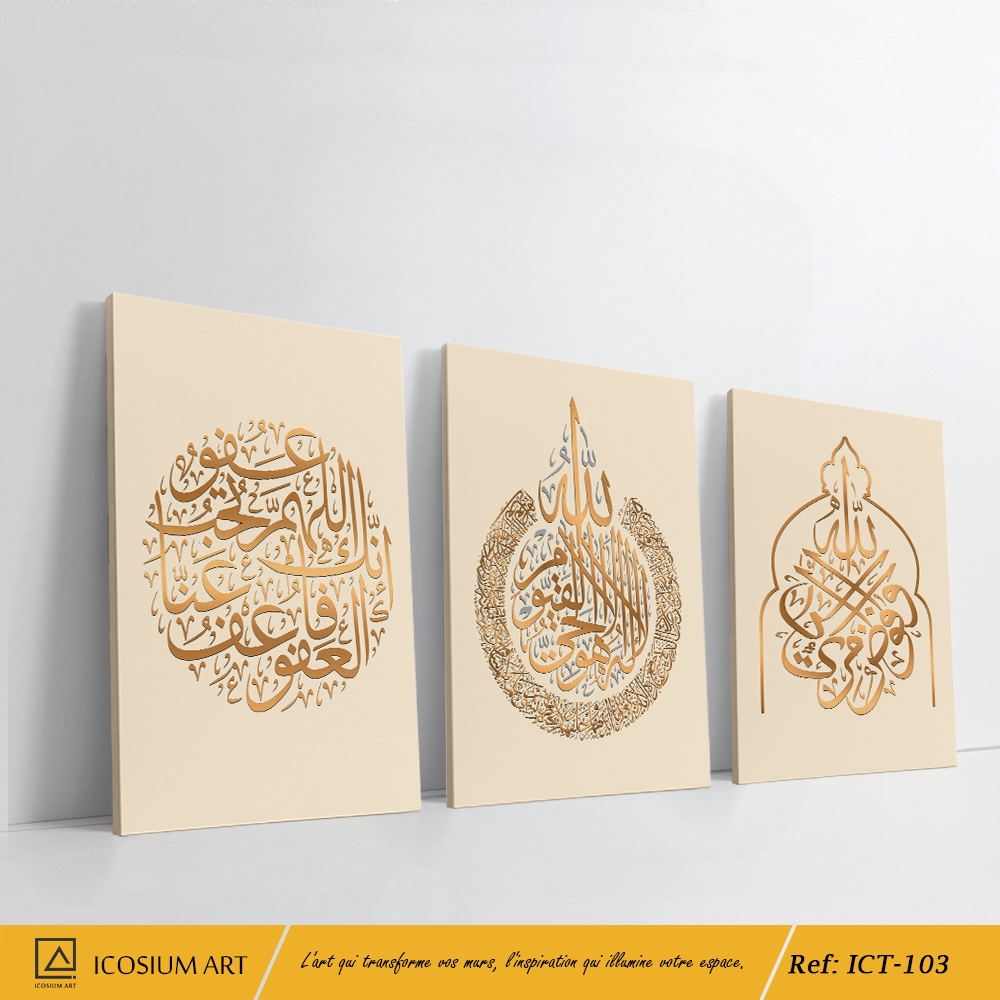 Triptyque Calligraphique “Élégance Spirituelle” – Doré & Beige | Déco Apaisante