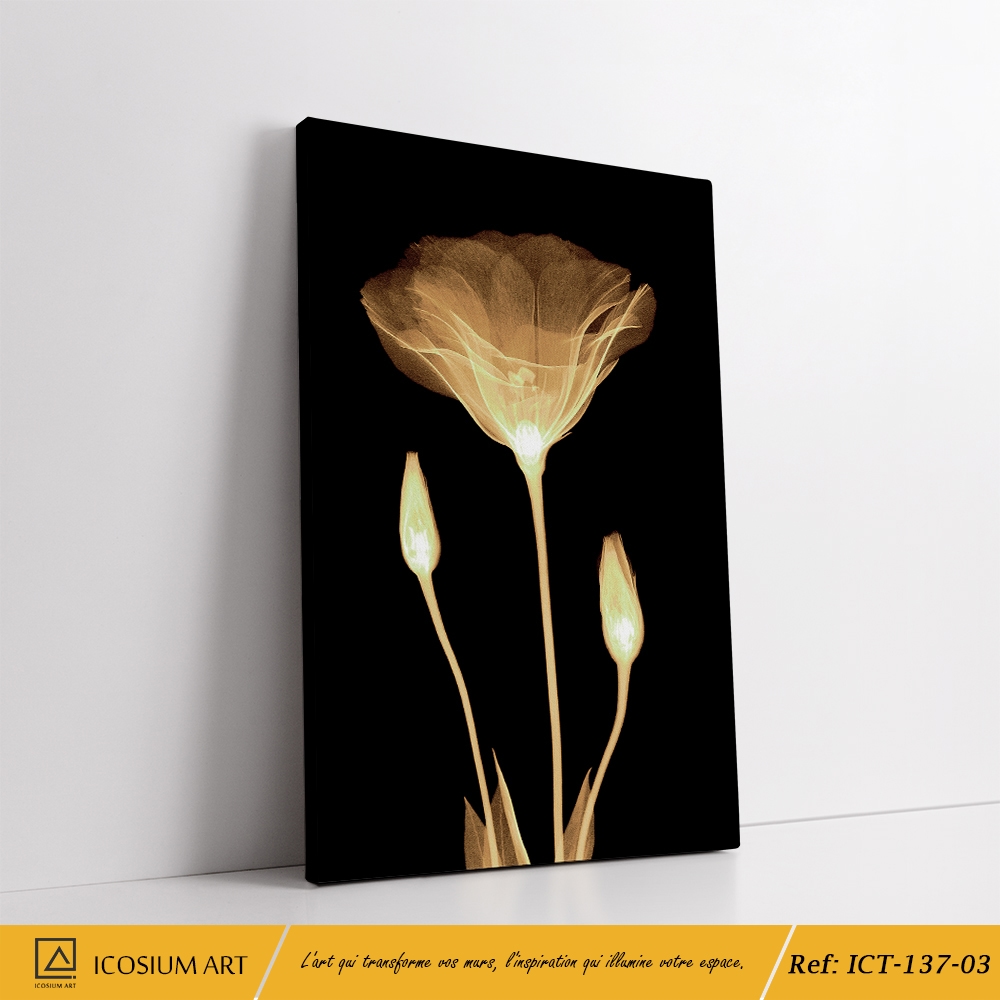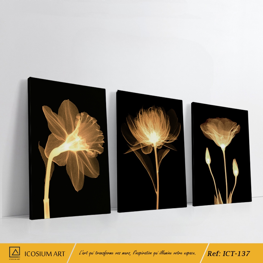 Triptyque “Floral X-Ray” – Art Floral avec Effet Rayons X, Noir Intense et Contraste Lumineux