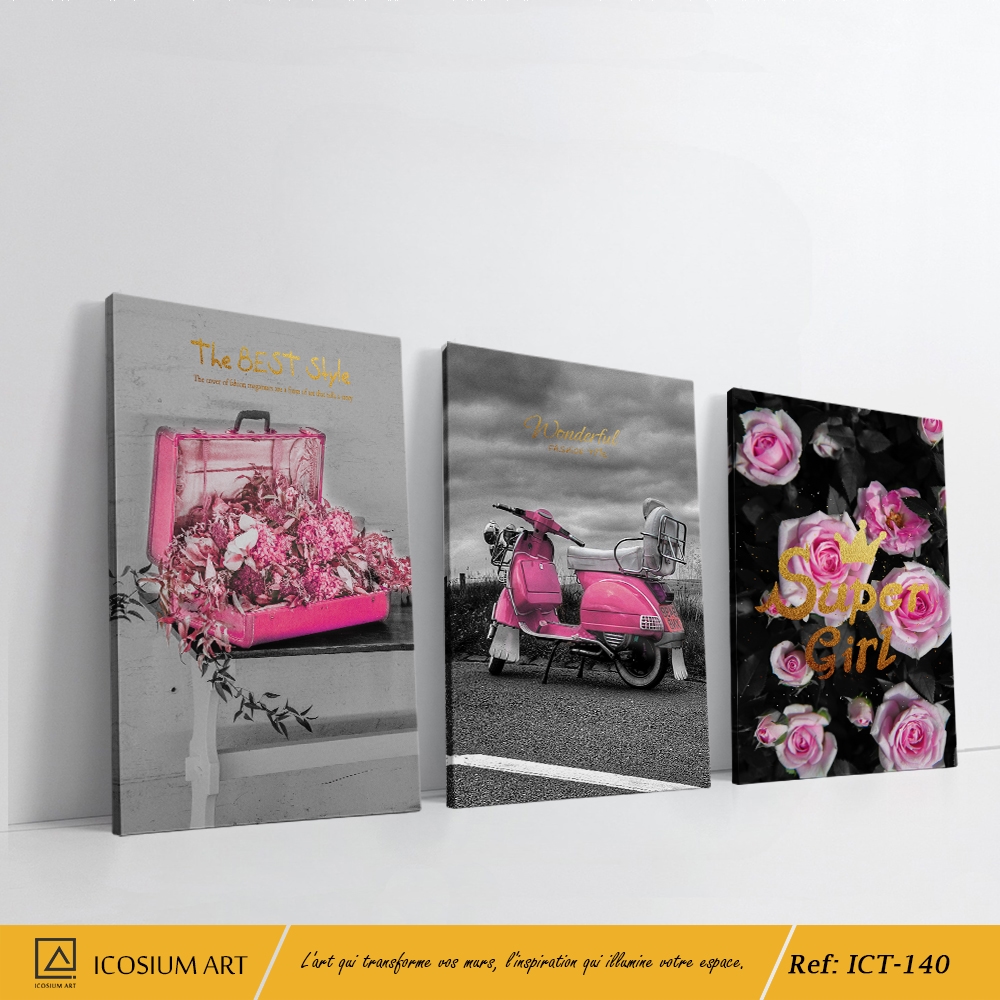 Triptyque “Glamour Pink” – Élégance Féminine, Rose Vibrant et Style Vintage Moderne